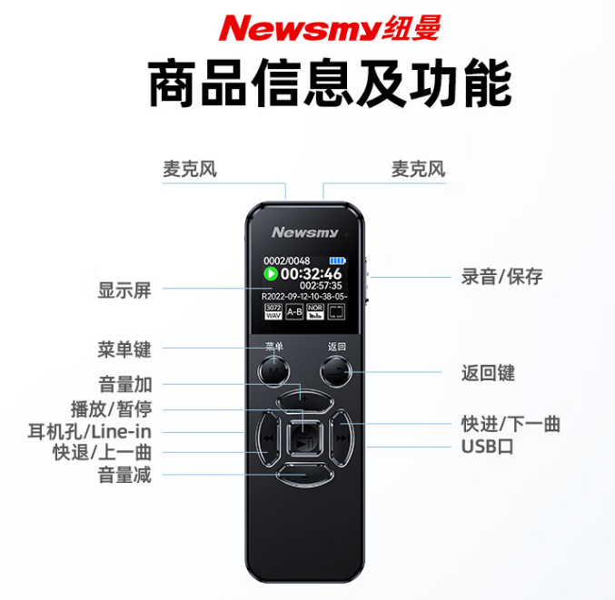 纽曼/Newsmy D20 录音外围设备 32G录音笔 高清无损音质 远距降噪声控录音