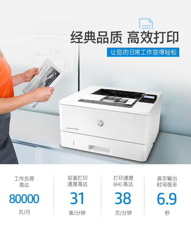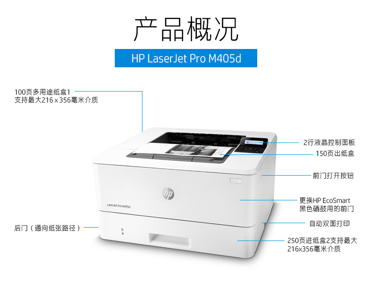 惠普(HP) M405dN专业级激光打印机 多功能一体机 液晶显示屏 自动双面打印 USB