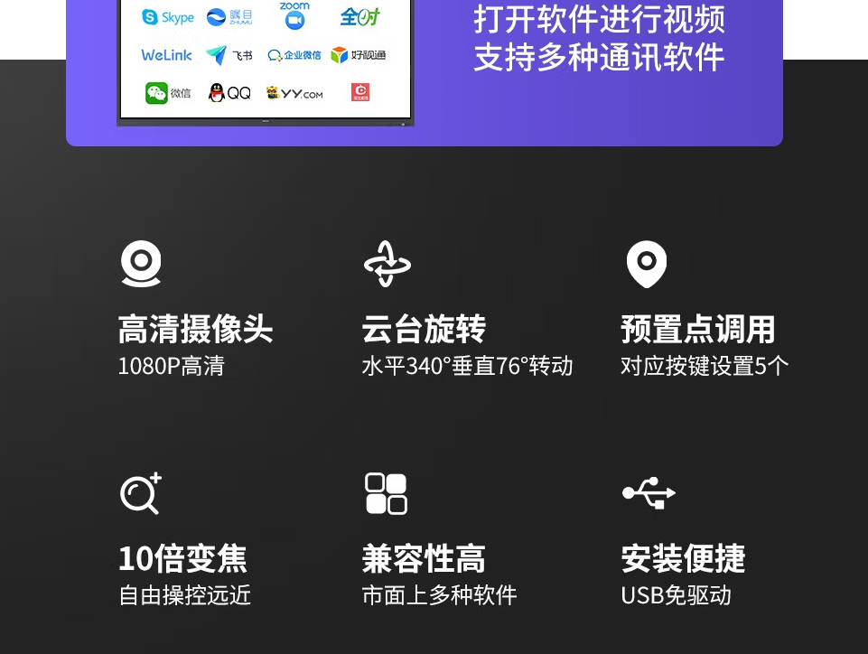 海康威视/HIKVISION DS-U102D 监控摄像机 视频会议摄像头1080P高清变焦 云台旋转200万像素USB免驱