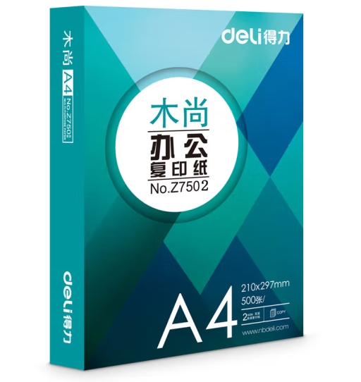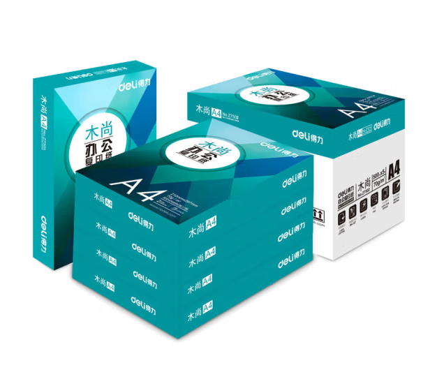得力/deli A4 70g 复印纸 木尚 纯木浆办公复印纸 (500张/包) 5包/箱