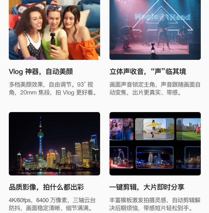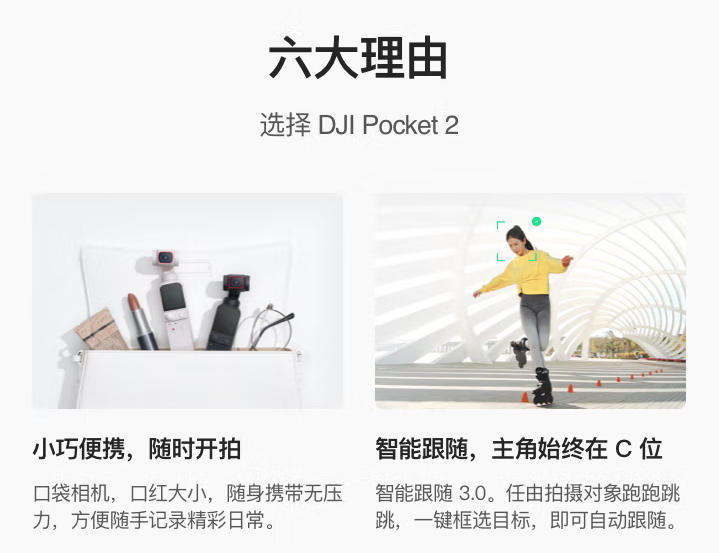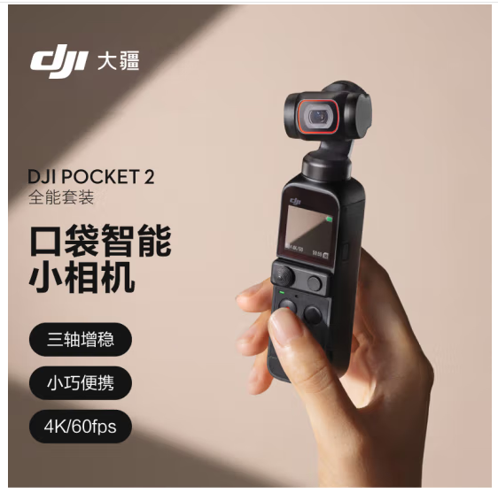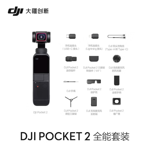 大疆/DJI Pocket 2 小型数码相机 经典黑全能套装 灵眸云台vlog全景手持相机 小型户外便携式高清防抖数码摄像机