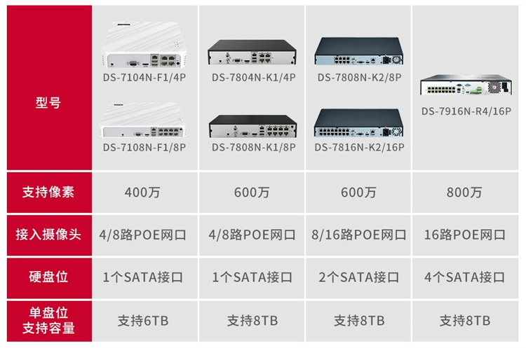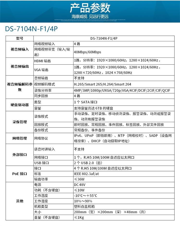 海康威视 DS-7104N-F1/4P 海康威视网络监控硬盘录像机4路POE网口 不带硬盘