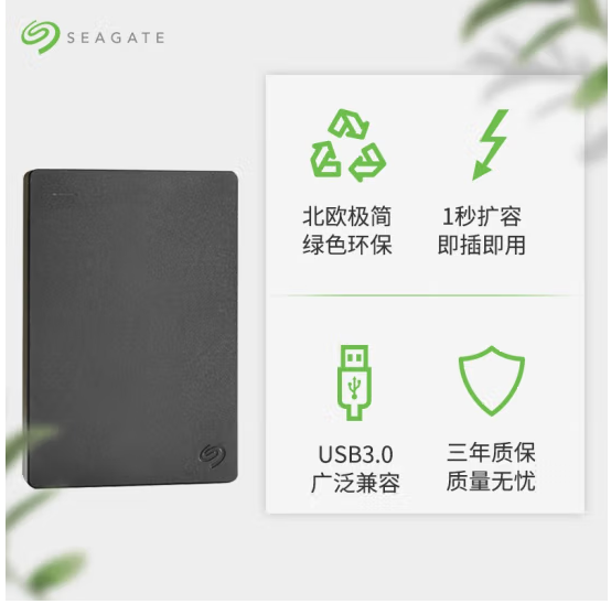 希捷/Seagate 1TB 移动硬盘 USB 3.0 2.5英寸 高速 便携 暗夜黑色
