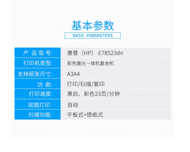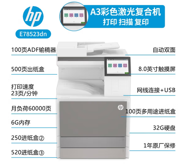 惠普/HP E78523dn 多功能一体机 A3A4彩色激光 自动双面打印 复印扫描复合机一体机 商用办公