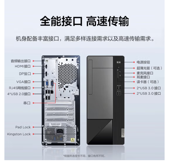 联想/LENOVO M460 台式计算机 13代酷睿i5-13400 16G内存 512G固态硬盘 23.8英寸显示屏 Windows 11