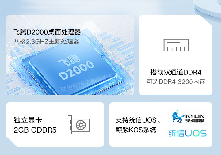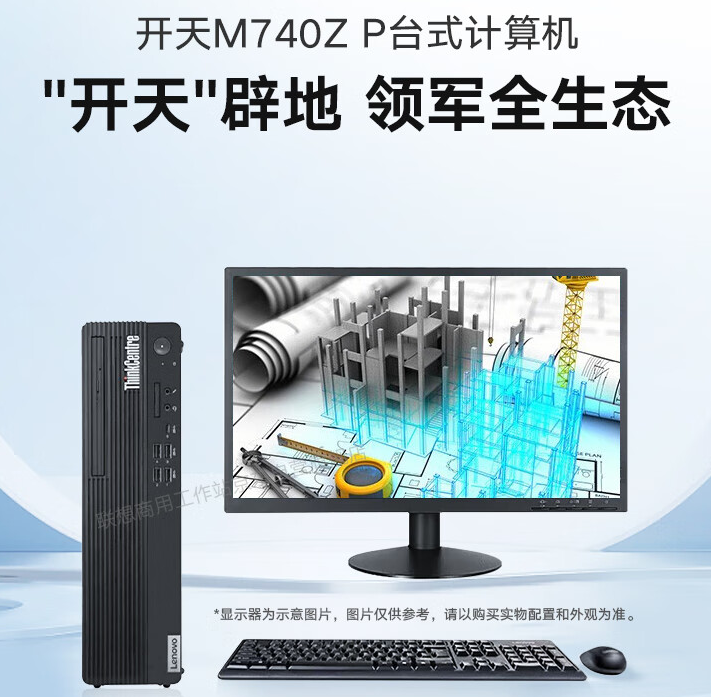 联想/LENOVO M740Z P-589 台式计算机 FT-D2000 8G 512G 2G DVDRW 银河麒麟V10试版 8.2升三年保 23.8寸