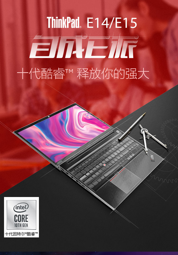 联想ThinkPad 十代酷睿i7 轻薄本 商务办公便携学生笔记本电脑 游戏本 i7-10510U E15 15.6英寸 高清IPS屏 0LCD 8G内存 512G固态硬盘 升级