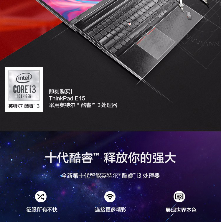 Win7系统】联想ThinkPad笔记本15.6英寸电脑 E15 十代英特尔酷睿i3/i5全尺寸键盘 0PCD(i5-10210u 16G 512G固态 定制Win7专业版/旗舰版)