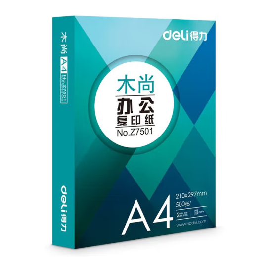 得力/deli A4/70g 复印纸 木尚系列 500张/包 5包/箱 (2500张)