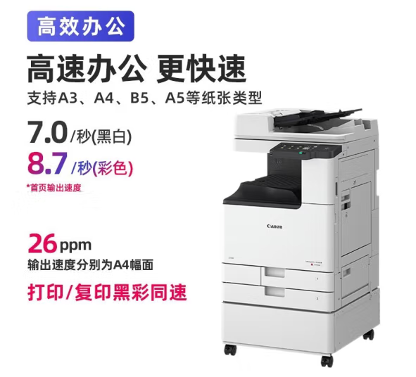 佳能/CANON C3326 复印机 A3彩色激光多功能数码复合机 双面打印 复印 扫描 双面自动输稿器 双纸盒 原装工作台 7寸彩色触摸屏 支持有线无线网络打印