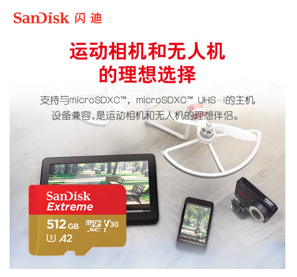 闪迪/SanDisk A2V30 U盘/存储卡 512GB (MicroSD)存储卡 读速160MB/s