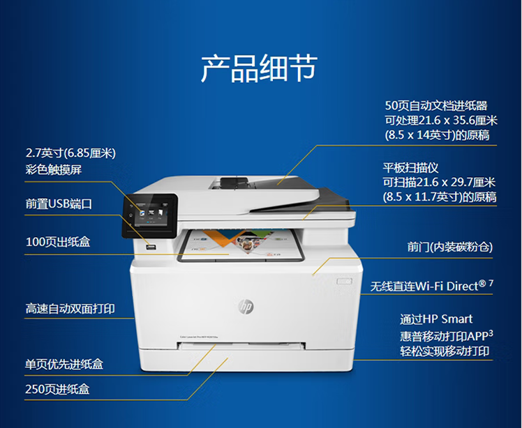 惠普/HP M281fdw 多功能一体机 A4彩色激光一体机(打印、复印、扫描、传真、自动双面)无线连接
