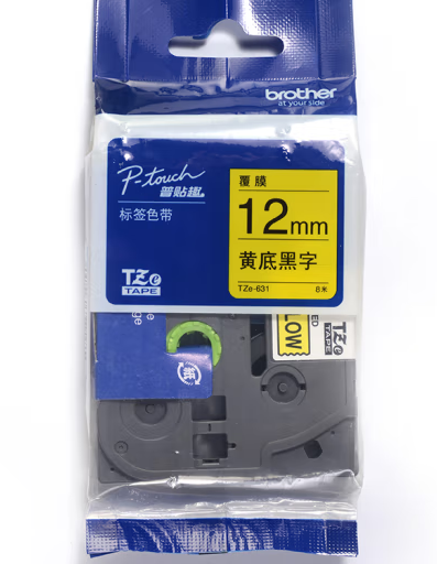 兄弟/BROTHER TZ-631 色带、碳带 12mm 黄底黑字标签色带 长8米