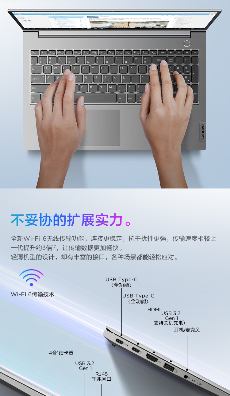 联想笔记本电脑 ThinkBook 15 锐龙版 2021款 15.6英寸轻薄本 长续航 窄边框 R5 4600U 16G 512G 高色域 02CD