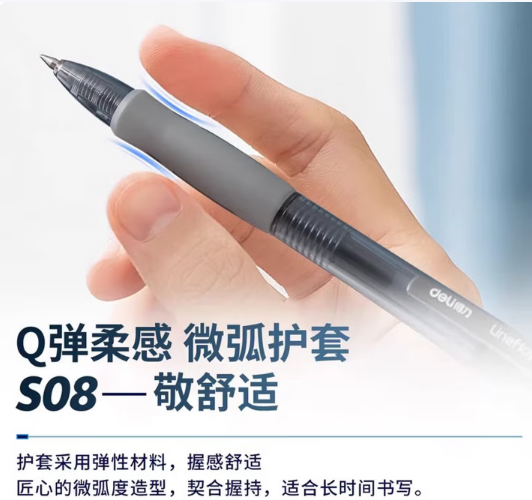 得力/deli S08 书写用笔类用具 0.5mm中性笔 碳素黑色按压式速干圆珠水笔 黑色 12支盒装
