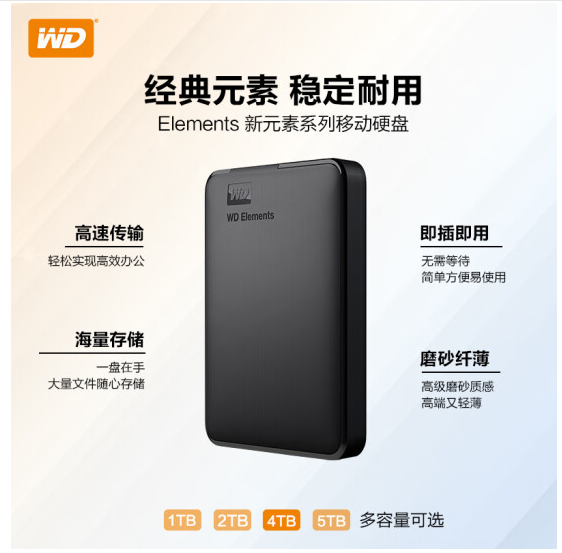 西部数据/WD 4TB 移动硬盘 usb3.0 2.5英寸 便携存储
