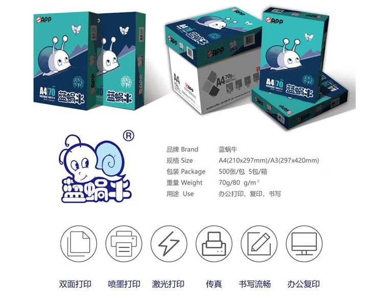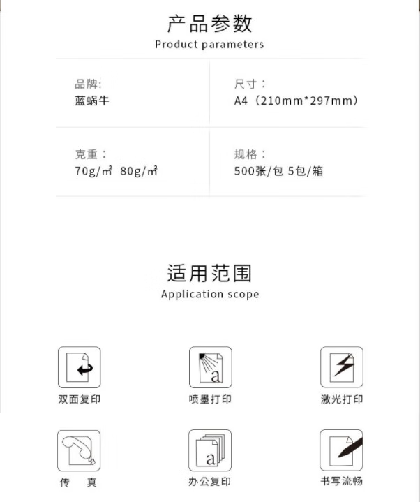 蓝蜗牛 A4/70g 复印纸 500张/包 5包/箱(2500张)单位:箱
