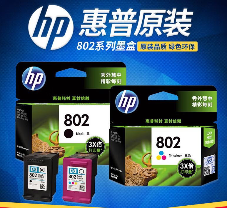 惠普/HP 802 喷墨盒 原装墨盒(黑色+彩色)双支 适用1050机型