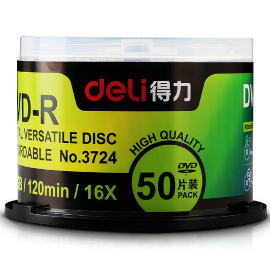 得力/deli DVD-R 光盘 4.7G 16倍速 50片盒装