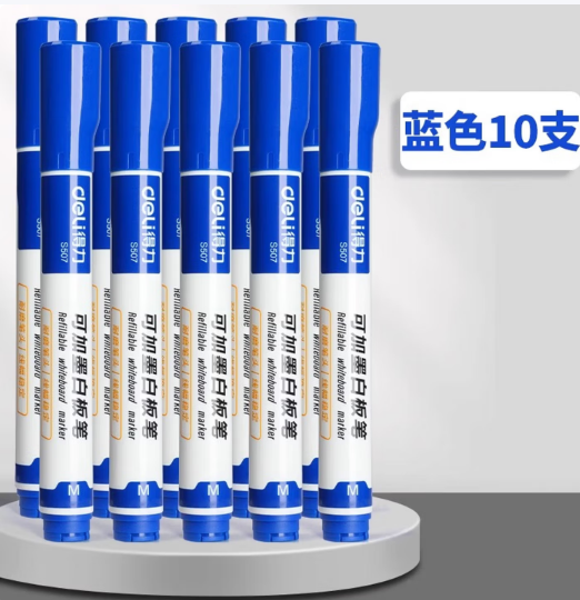 • 得力/deli S507 书写用笔类用具 蓝色白板笔水性可擦可加墨