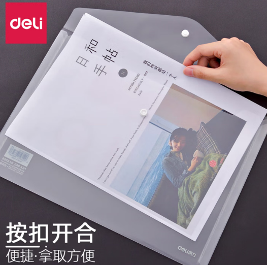 • 得力/deli 8308 文件袋 A4按扣袋透明塑料
